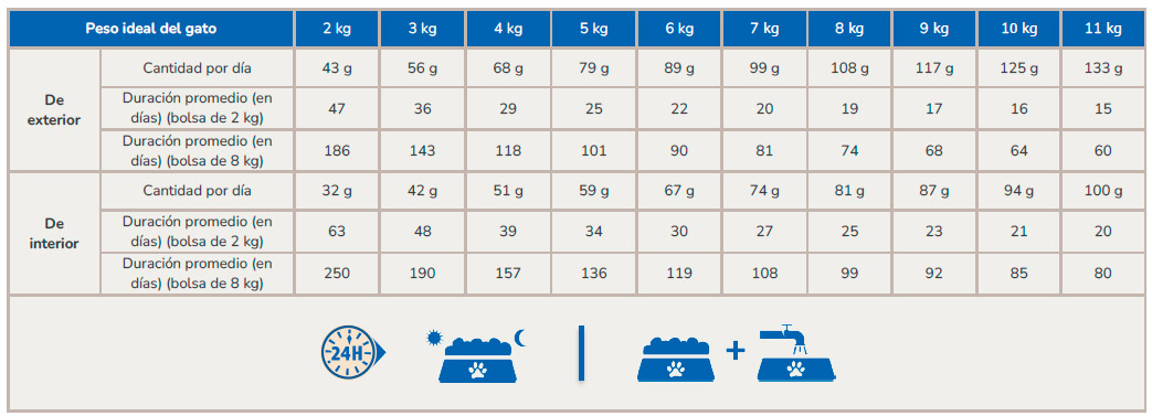 Cantidad RecomendadaSirve la comida poco a poco, haciendo una transición con la comida anterior, tal cual o con agua, según la tabla de racionamiento impresa en la bolsa. Las cantidades diarias deben ajustarse en función de la raza, el peso y la actividad del animal. Deja agua fresca a disposición del animal.